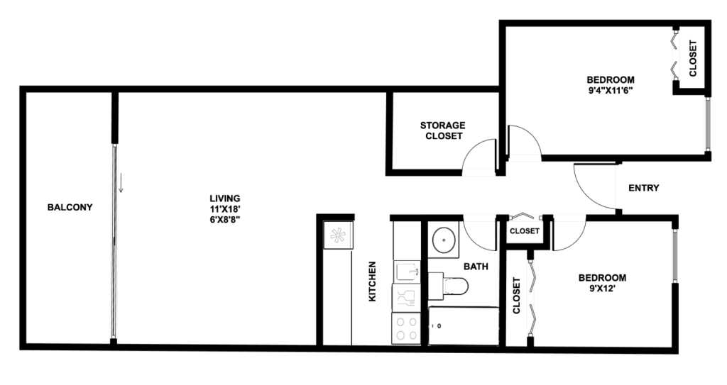 RENTED | 2 Bed / 1 Bath | 655 Moberly Road | 2nd Floor | 805 sq ft Interior | 70 sq ft Balcony